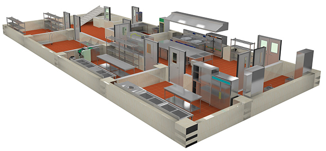 香蕉成人网站下载內的功能區域有加工工藝深度的區別和餐飲類別的區別。庫房區粗加工,主、副食加工,涼菜,備餐,洗消等加工間是由生到熟的深化加工過程,需要采取隔斷或明顯的區域界限劃分,消除交叉汙染的概率。最基本的製餐類別的區別就是主、副食與涼菜的區分。較大的飯店還會有中餐與外餐的區別,僅中餐店也有麵食、粥房、烤烙等製餐類別根據經營需要,這些製餐類別需要專用的技術設備和相對獨立的工作區域,防止人員、食材空氣、下水、廢棄物的流動汙染。